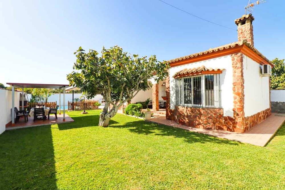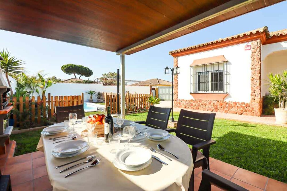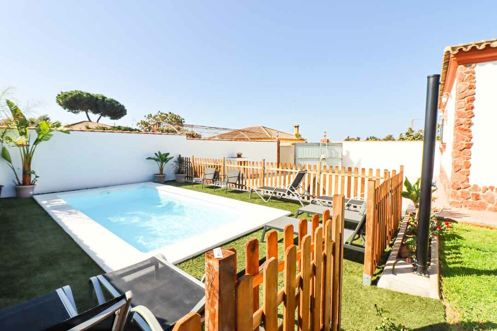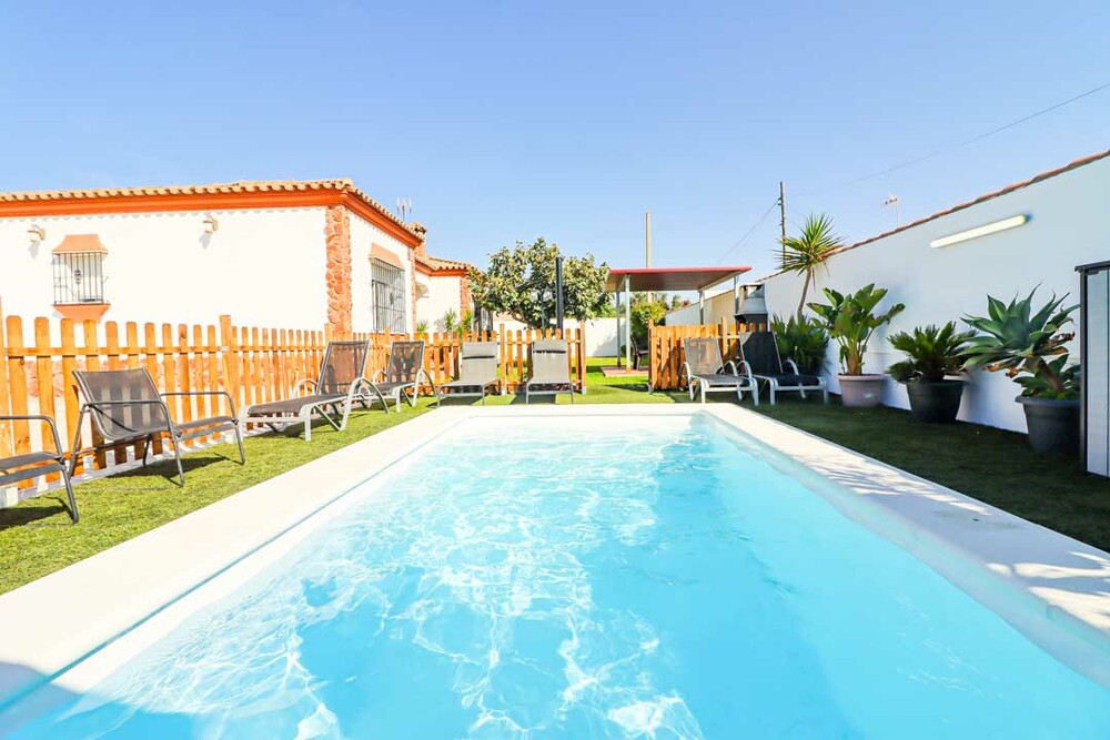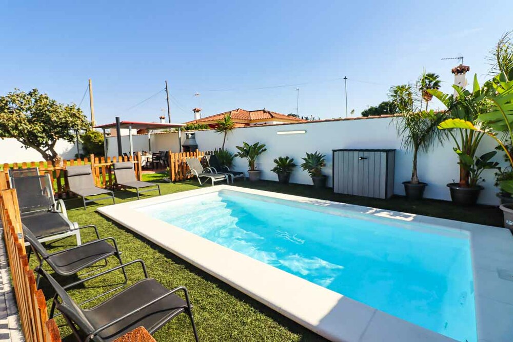 Villa Rosales es un bonito chalet de vacaciones con piscina privada en Chiclana con tres dormitorios con capacidad para 6 personas.