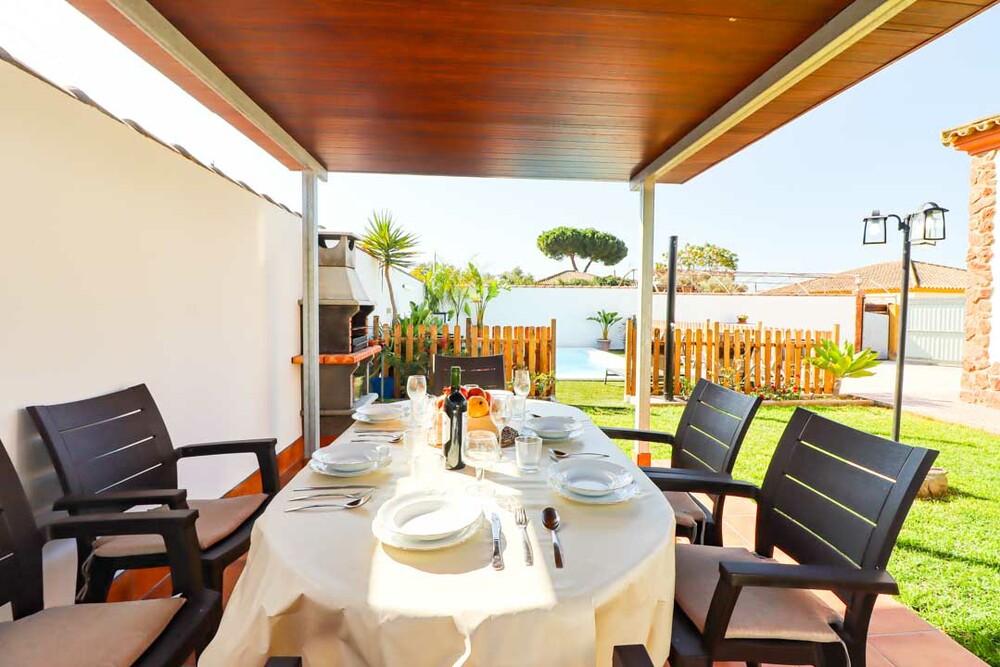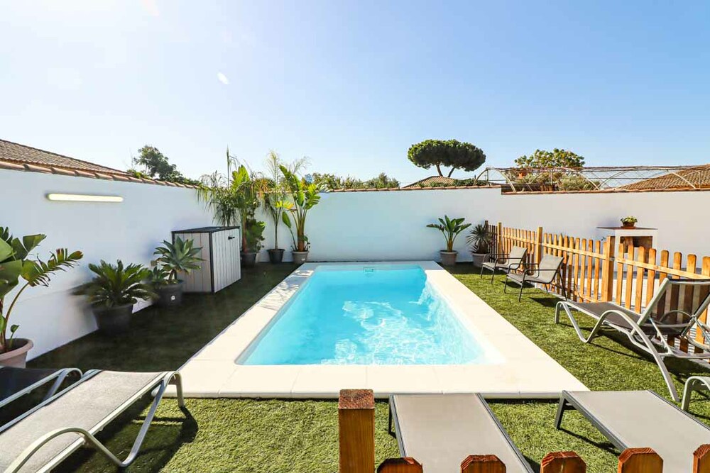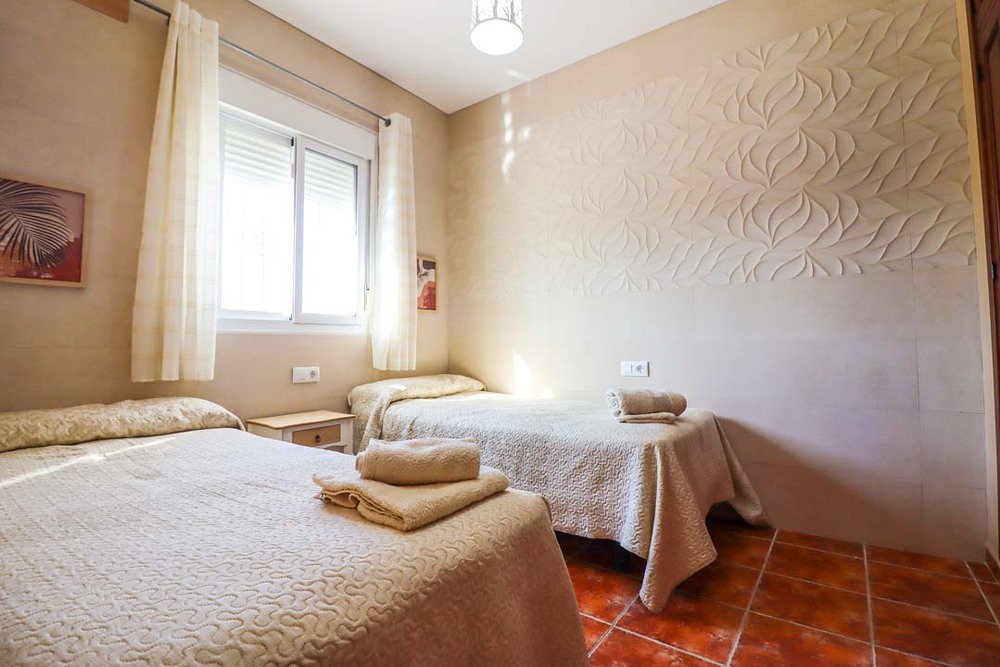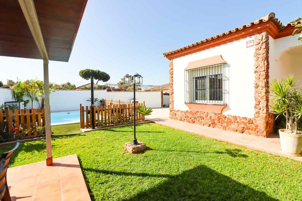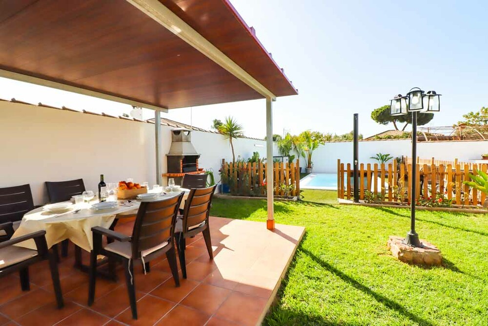 Villa Rosales es un bonito chalet de vacaciones con piscina privada en Chiclana con tres dormitorios con capacidad para 6 personas.