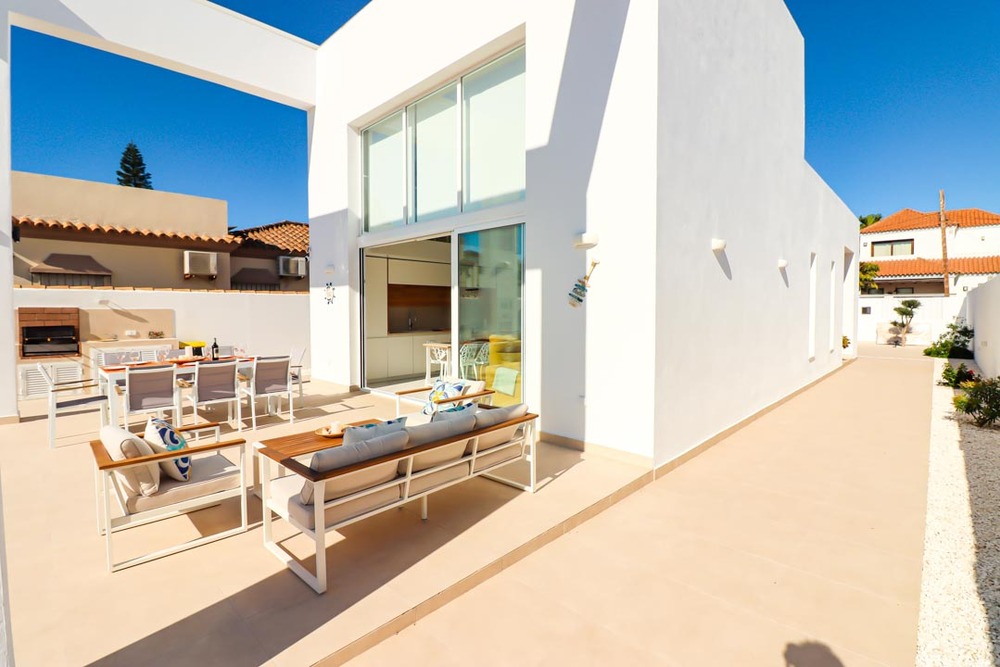 Villa con estilo a 3 minutos caminando a la playa para 8 personas. Situada en la mejor zona de La Barrosa. Julio y Agosto por quincena natural.