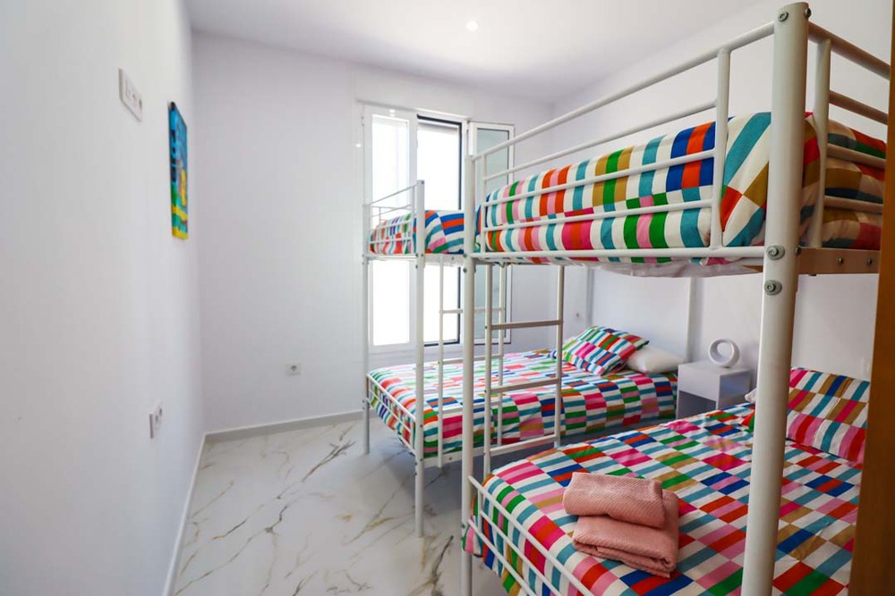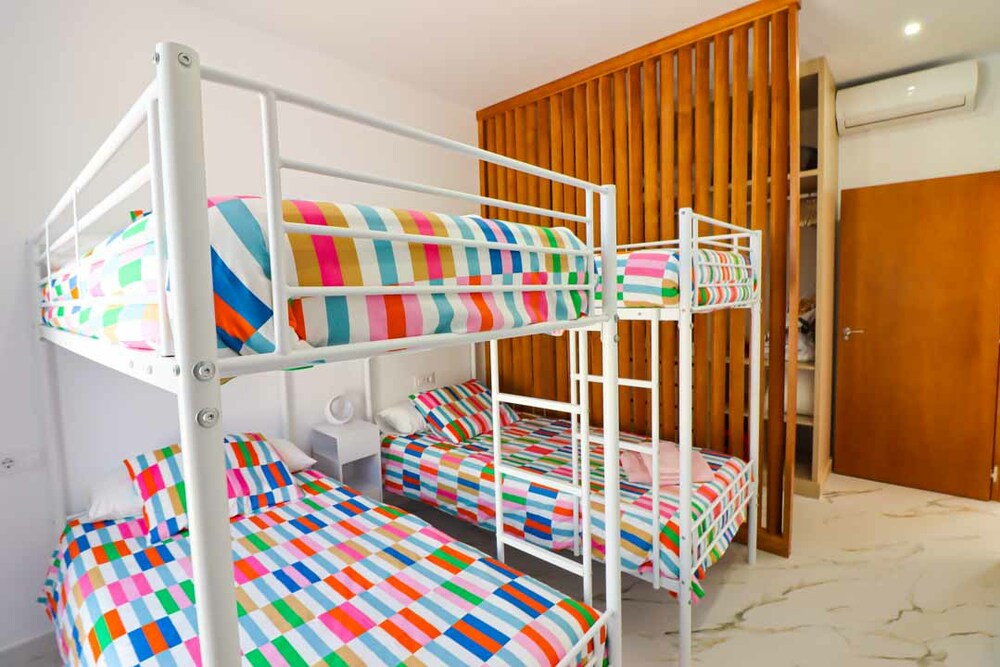 Gran villa con 6 dormitorios y 3 baños, 11 personas, 2 minutos caminando de la playa. Piscina comunitaria. PTE actualizar precios y disponibilidad.
