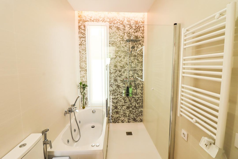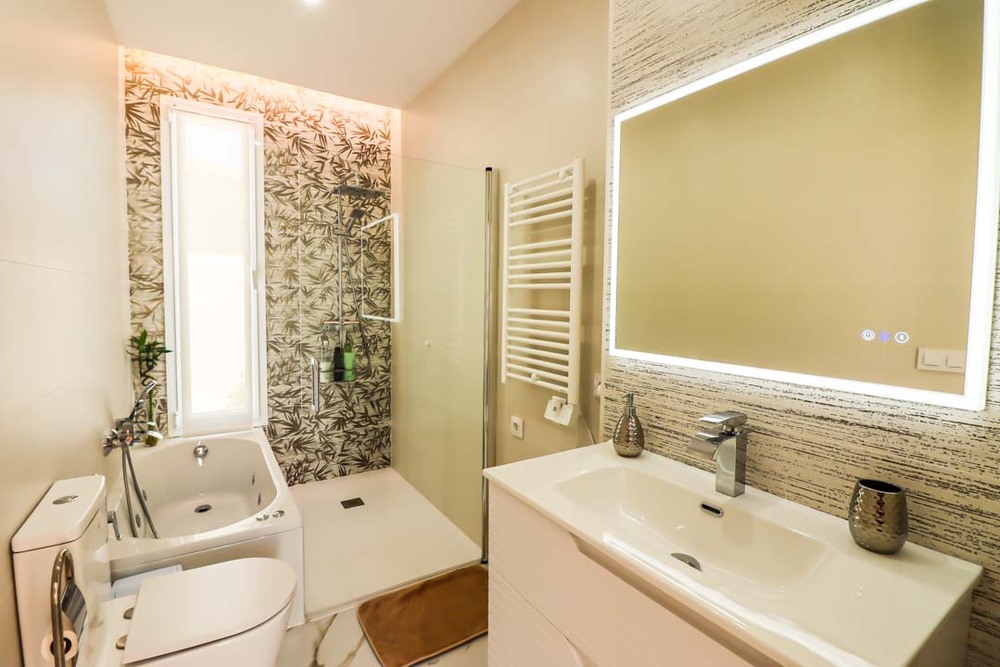 Dormitorio nº1: Cama de matrimonio + baño completo con ducha con hidromasaje.