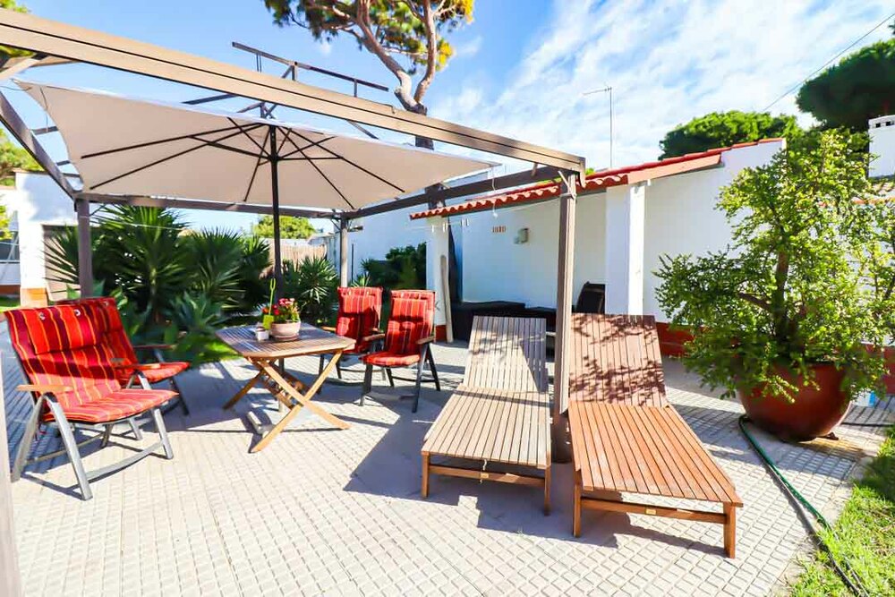 Chalet con estilo de 3 +1 dormitorios y 2 baños con piscina cerca de la playa la Barrosa, capacidad para 8 personas.